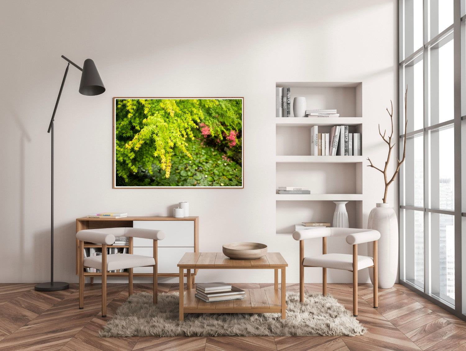 PLEASE NOTE: framed images shown in settings are a visual suggestion only and not to scale - please see image and frame dimensions for A3, A2 and A1 sizes.